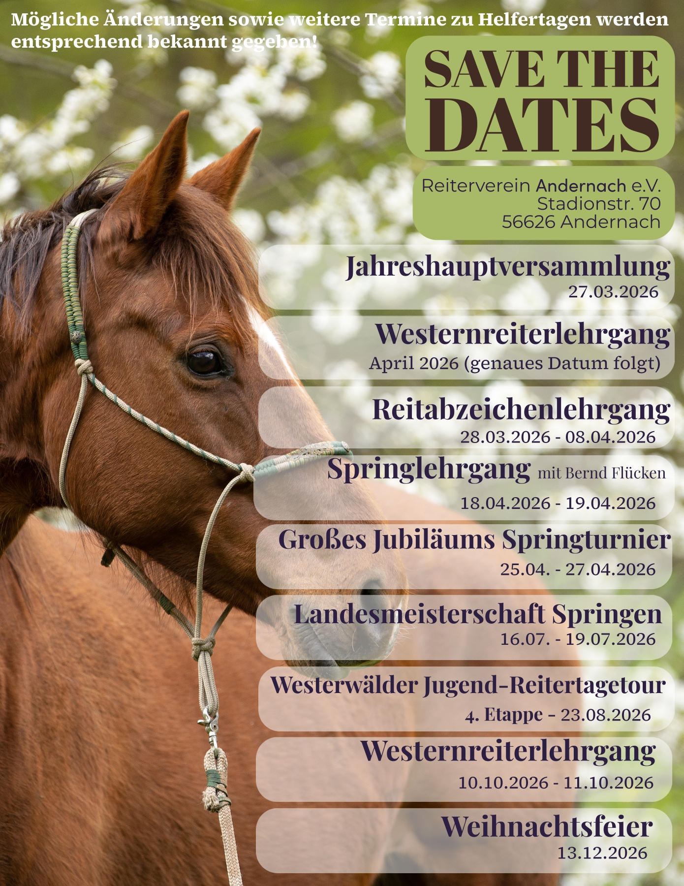Zudem möchte der Reiterverein Andernach e.V. seinen Mitgliedern